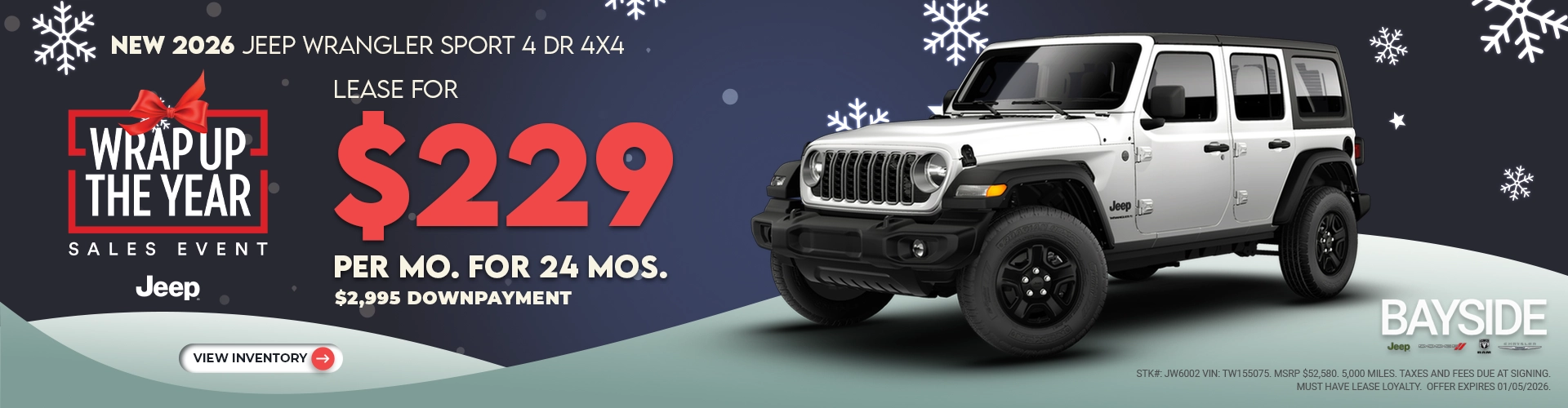 Had a great recent experience at Bayside Chrysler Jeep Dodge Ram. Leased two new vehicles with no hassle. Alston was extremely professional and courteous and got us into the right vehicles at the right price. Will easily recommend to friends and family and will definitely be back for our next vehicle.